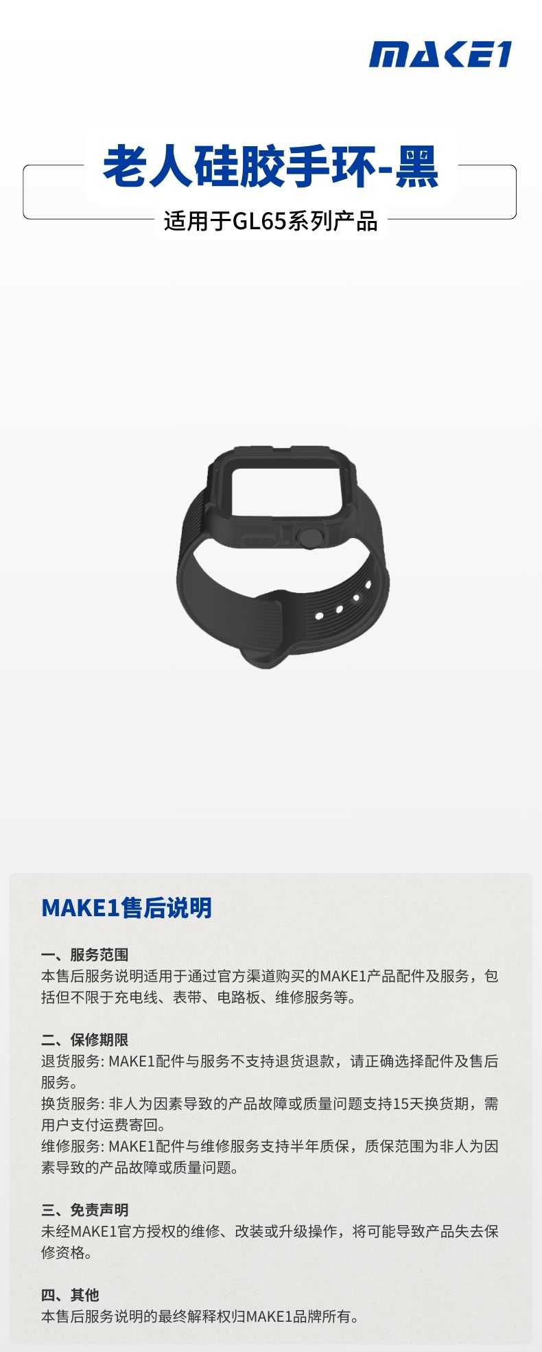 MAKE1 老人硅胶手环-黑