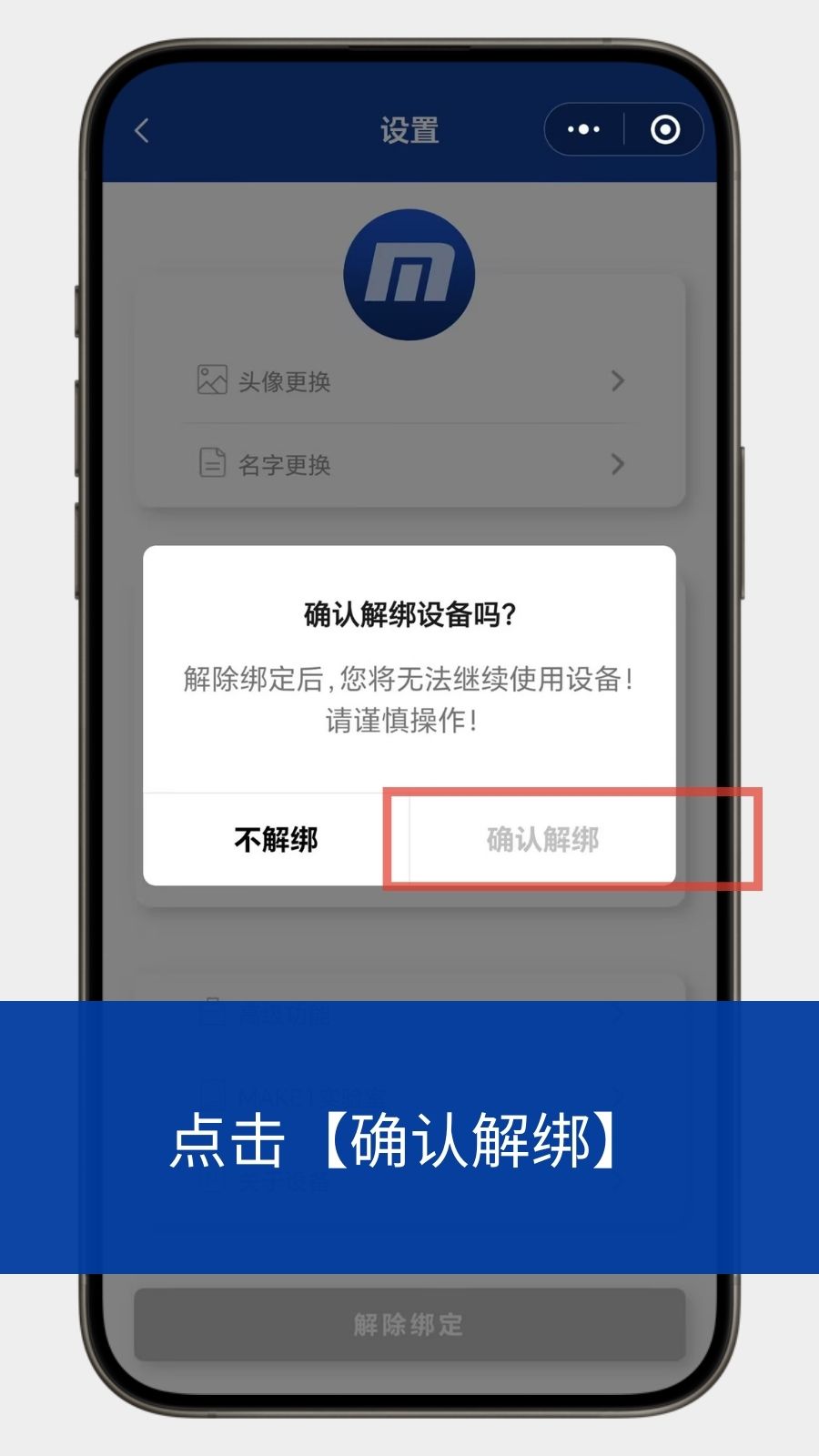 点击【确认解绑】; 等待几分钟后,设备即可开始重新绑定;