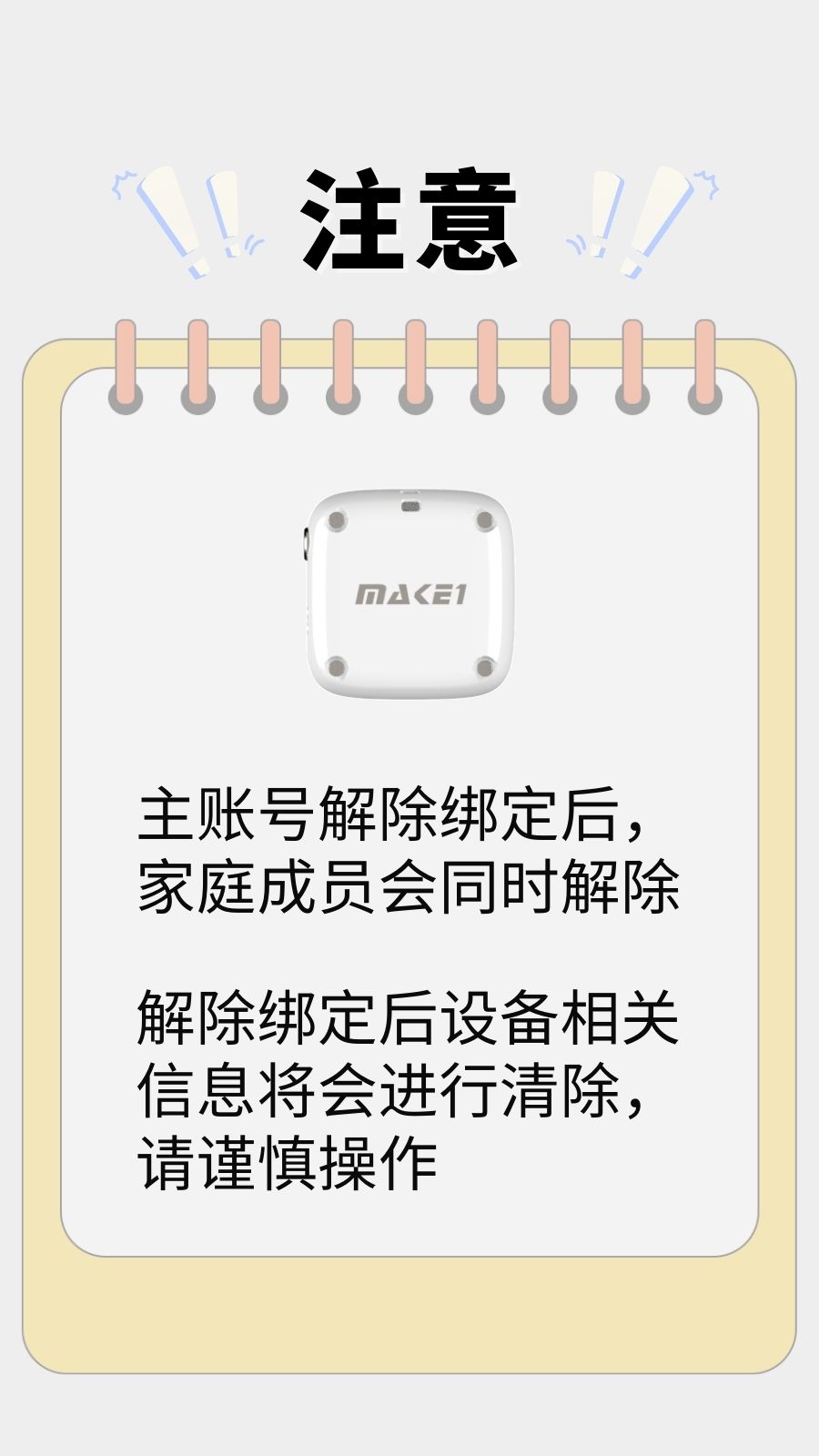注意: 1.主账号解除绑定后,家庭成员会同时解除。