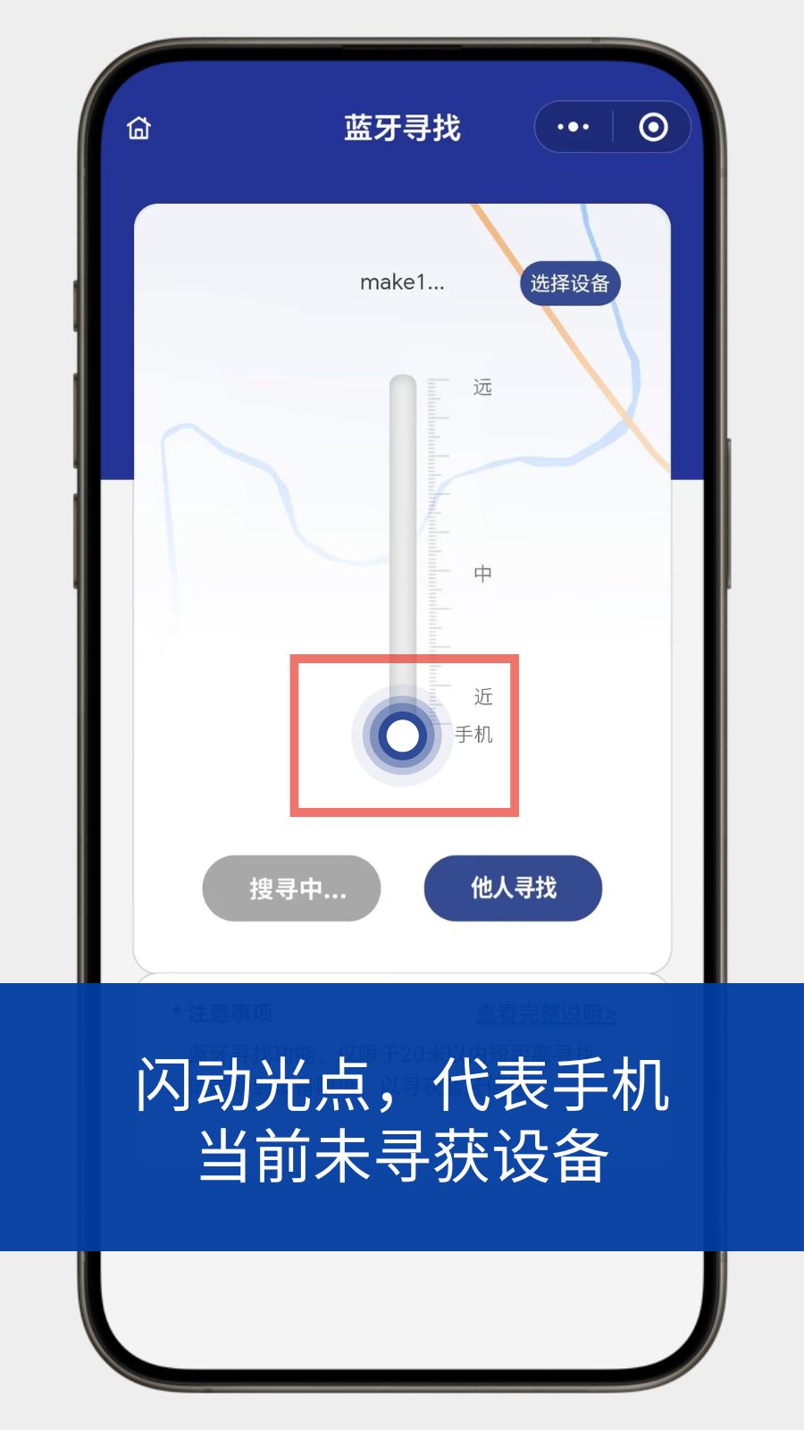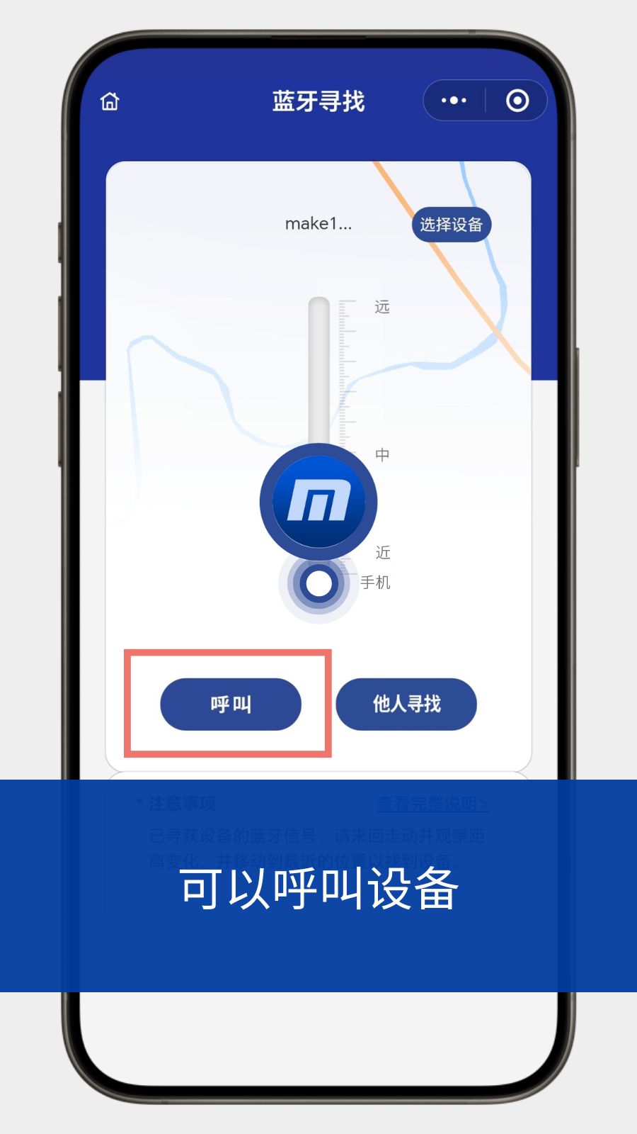 蓝牙寻物功能,是MAKE1实验室免费提供的一种近距离搜寻设备的方法,此功能适用于寻找近距离但无法看到的设备,如放在抽屉里、掉进草丛中、位于地下室弱信号区等。