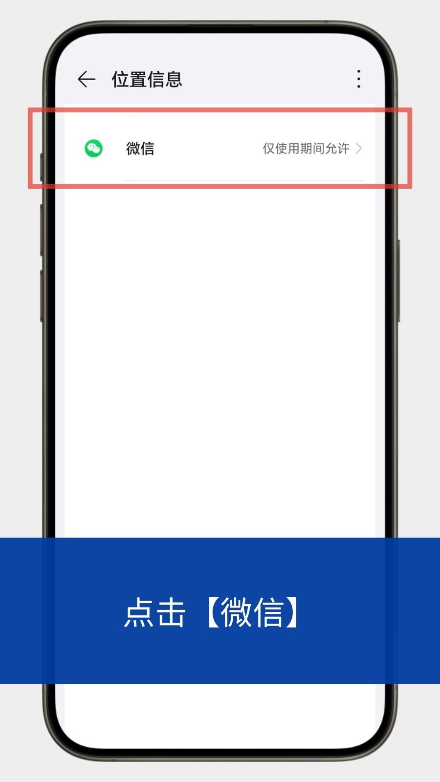 2.手机对“微信”授权定位权限,选择“微信”应用程序,开启“允许”使用定位权限