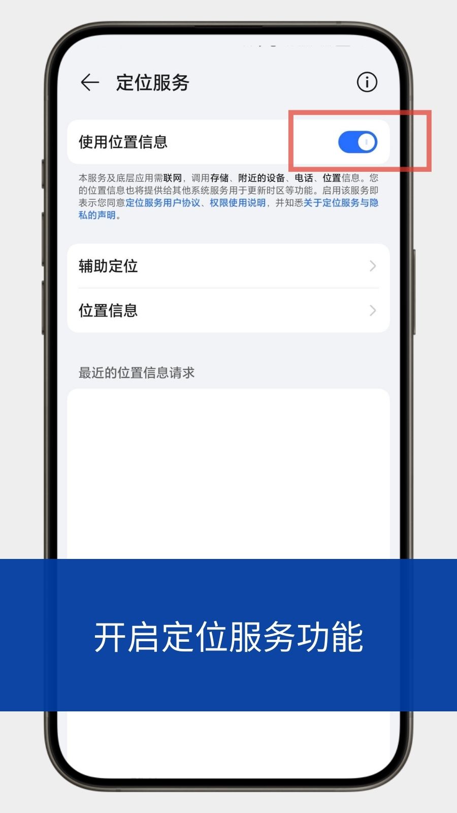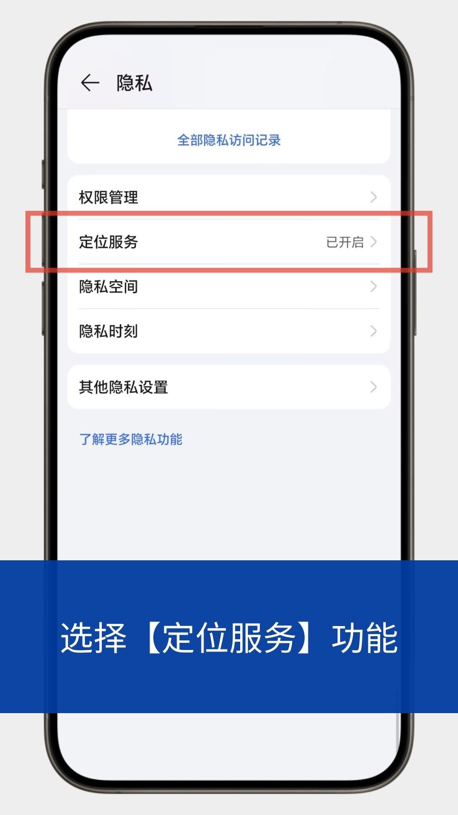 1.手机定位功能开启,打开手机系统“设置”,选择“隐私与安全性”,选择“定位服务”功能,开启定位服务功能