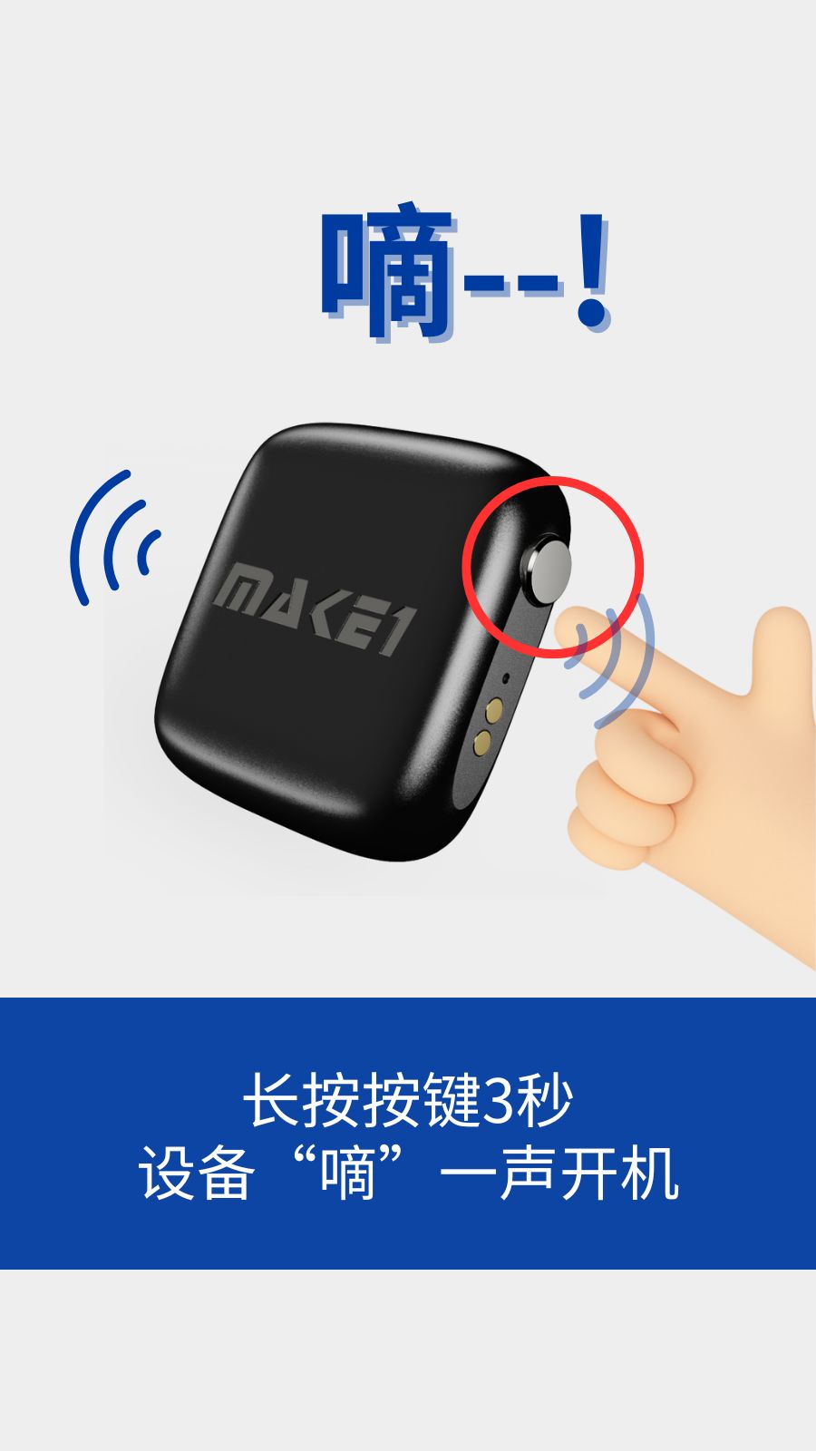5.绑定过程中需要远程人员配合对设备开机,长按按键3秒,“滴”一声开机